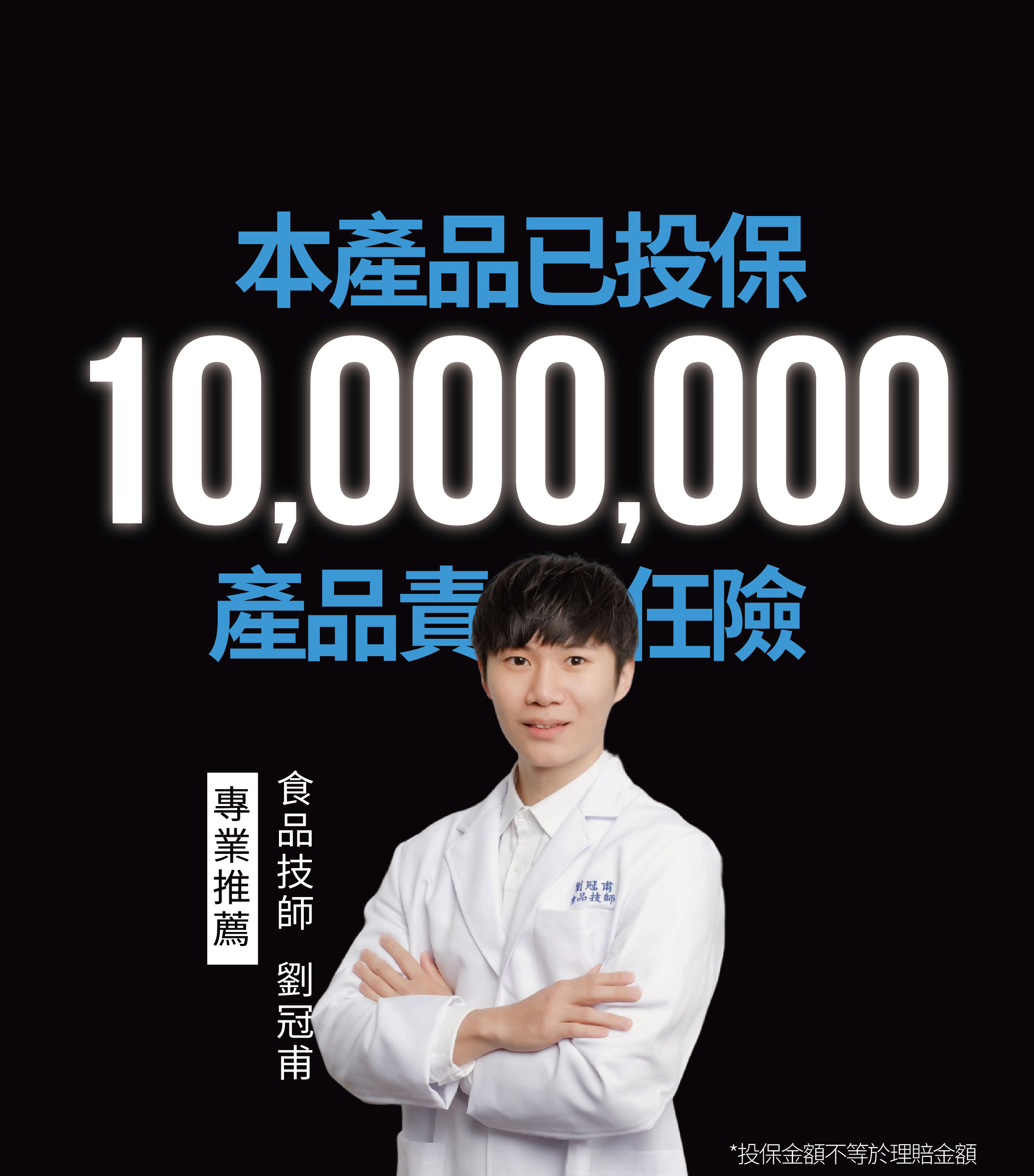 本產品已投保產品責任險最高新台幣 1000 萬元 (投保金額不等同於理賠金額)