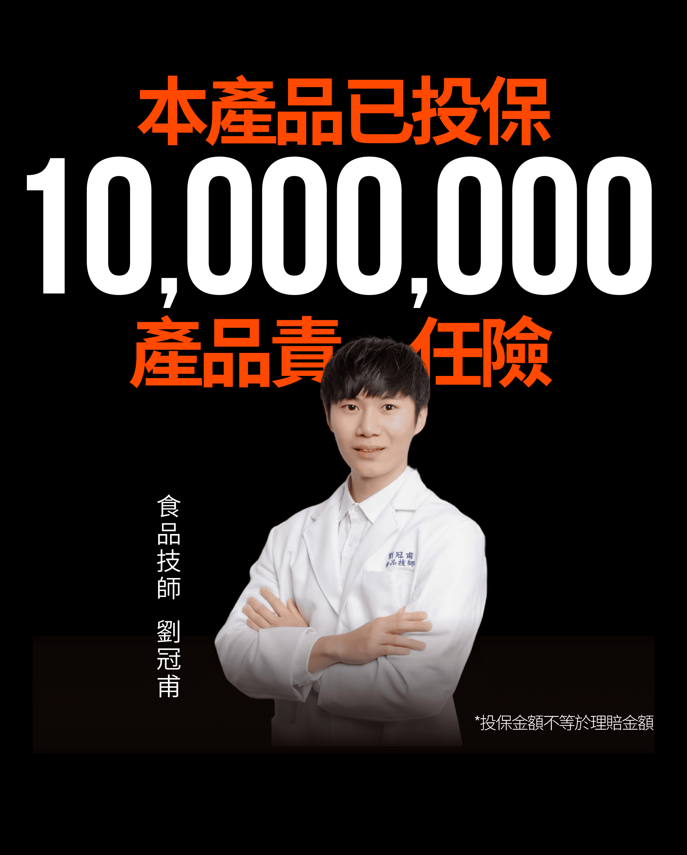 本產品已投保產品責任險最高新台幣 1000 萬元 (投保金額不等同於理賠金額)
