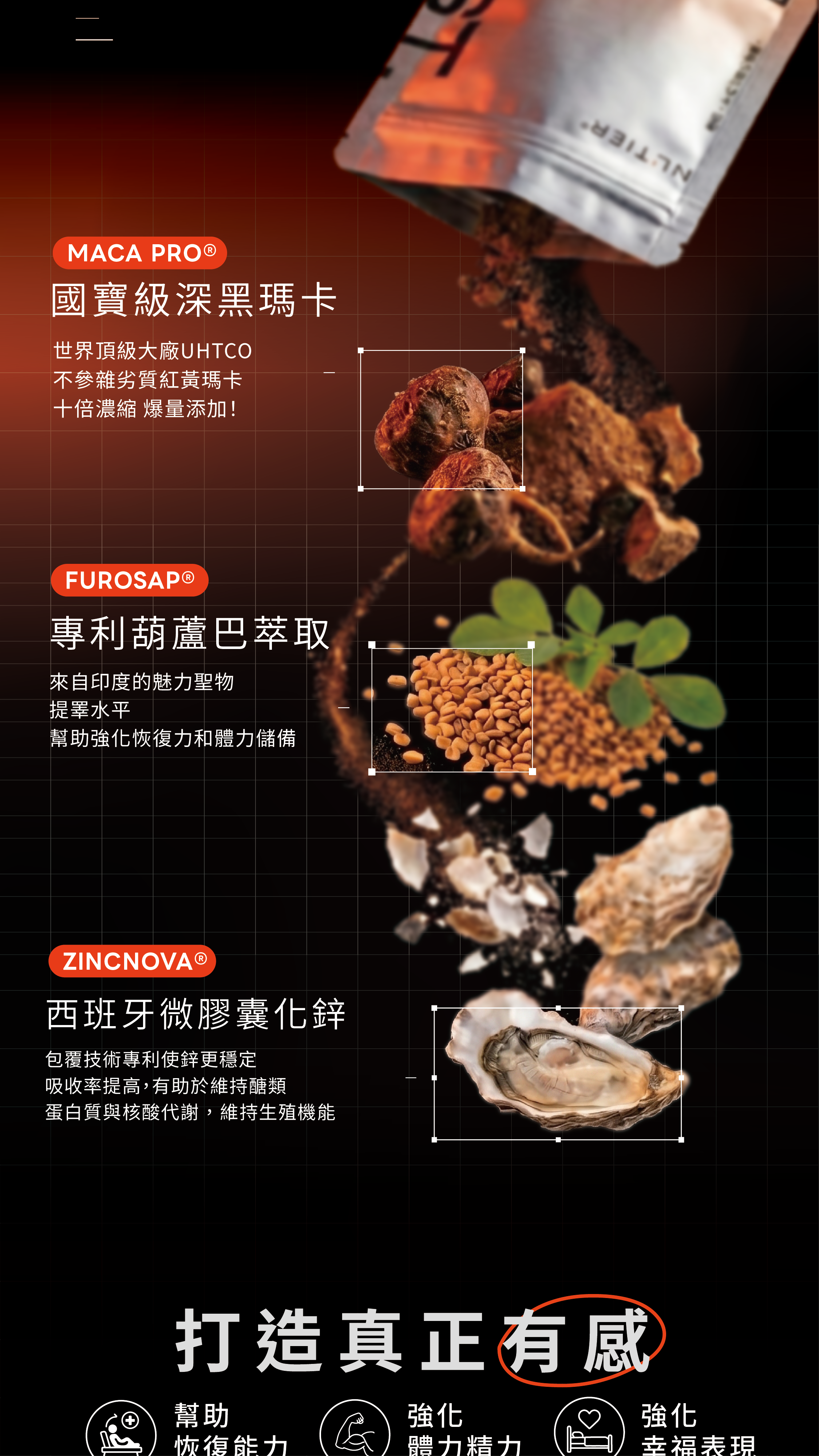 三睪:睪劑量的葫蘆巴、睪濃度的瑪卡、睪吸收率的微膠囊鋅