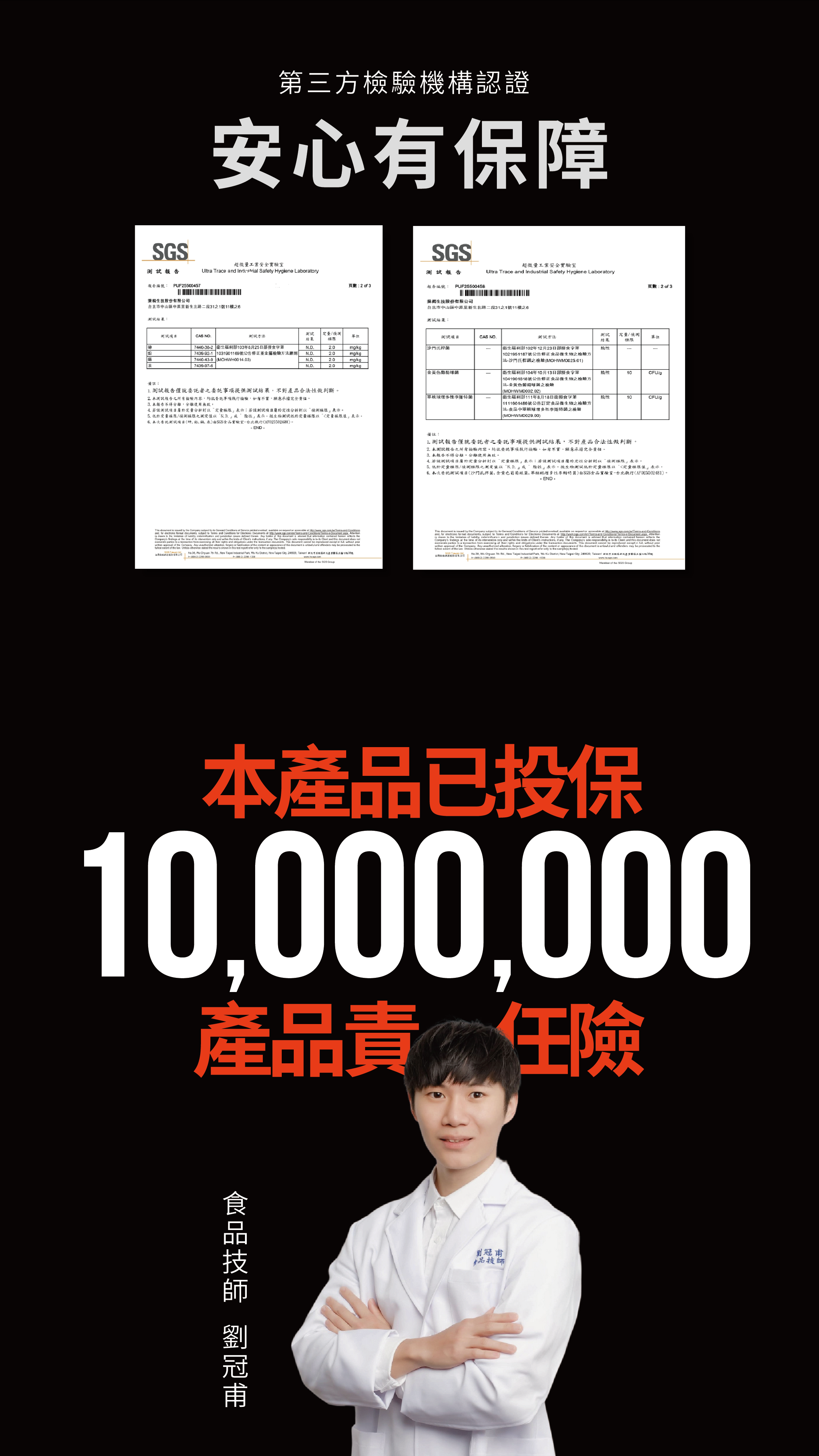 本產品已投保產品責任險最高新台幣 1000 萬元 (投保金額不等同於理賠金額)