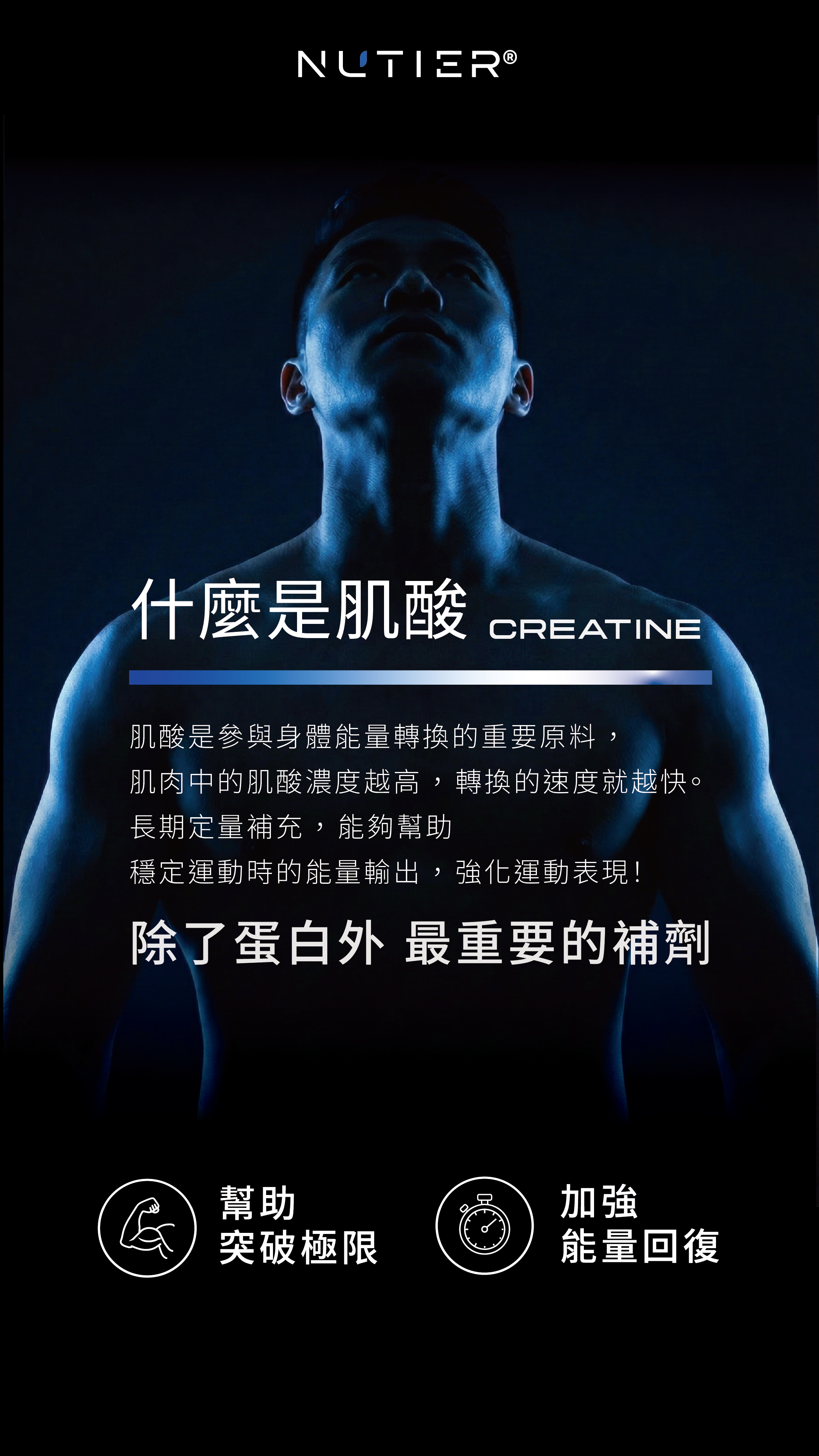 肌酸的功效是幫助強化短時間高強度運動表現,也能夠增加你的能量儲備,延長高強度運動持續時間,減少疲勞。